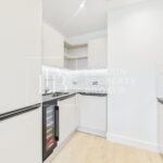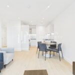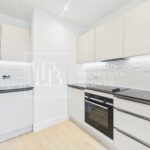 The bright open-plan living space features premium finishes and leads out to a private balcony — perfect for relaxing after work or entertaining friends. The modern kitchen is fully fitted with integrated appliances and sleek cabinetry, offering both functionality and sophistication.