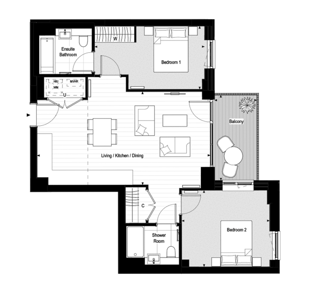 Two spacious double bedrooms, including a principal bedroom with ensuite and built in wardrobe