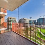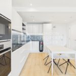The bright open-plan living space features premium finishes and opens onto a private balcony — perfect for relaxing after work or entertaining guests. The modern kitchen is fully fitted with integrated appliances and sleek cabinetry, offering both functionality and sophistication.