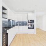 The bright open-plan living space features premium finishes and opens onto a private balcony — perfect for relaxing after work or entertaining guests. The modern kitchen is fully fitted with integrated appliances and sleek cabinetry, offering both functionality and sophistication.