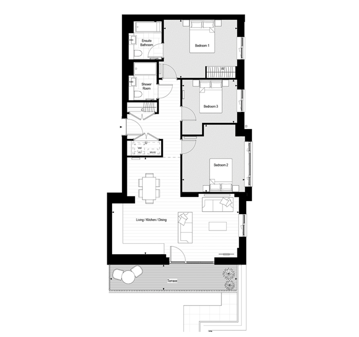 Stylish three bedroom, two-bathroom apartment within a modern development