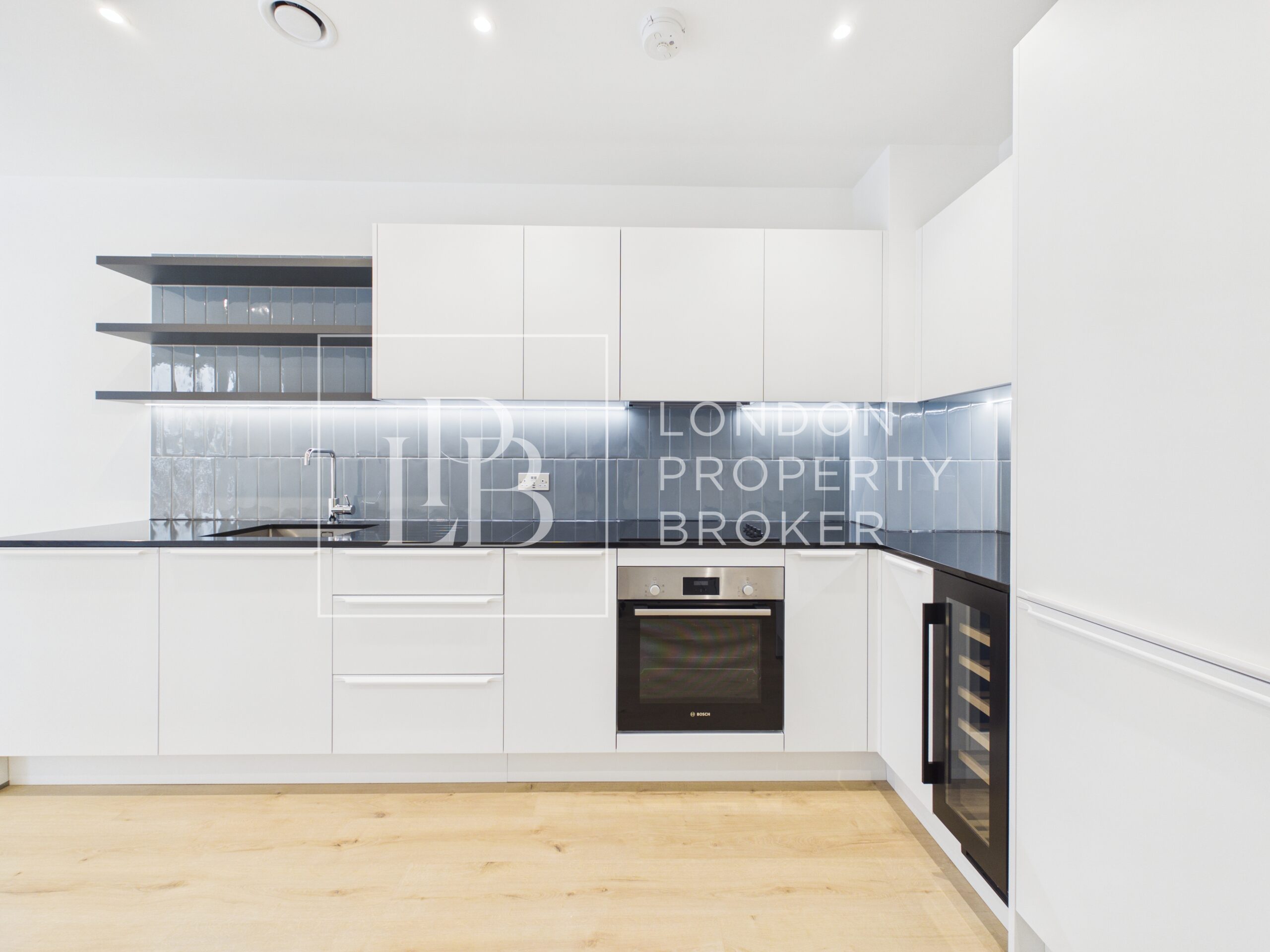 Fully fitted contemporary kitchen with integrated appliances and sleek cabinetry