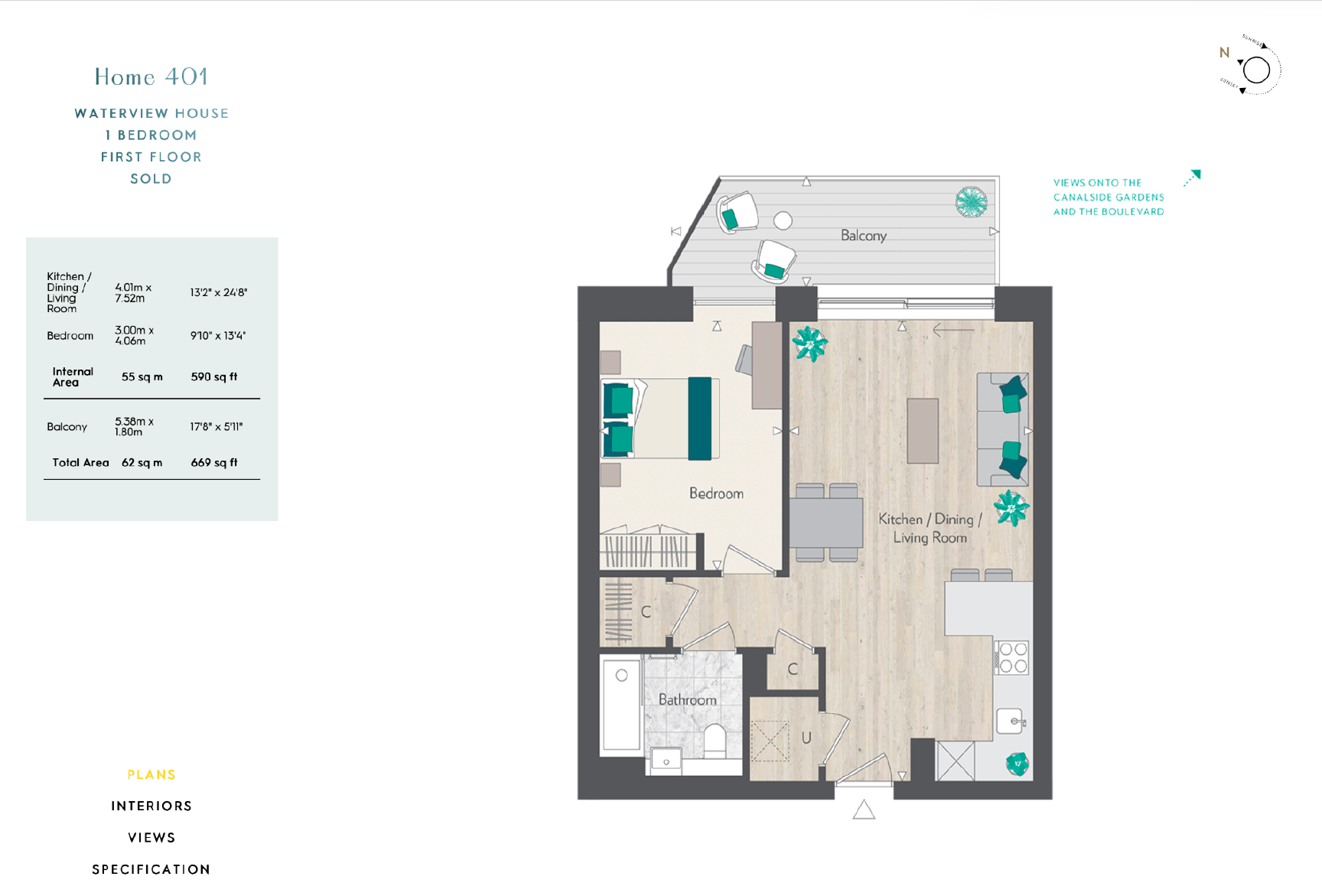 A stylish and spacious one-bedroom apartment (590 sq ft) on the 1st floor of the highly sought-after Grand Union development by Berkeley Homes.