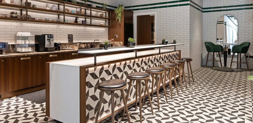 - Residents’ bar, lounge, dining room, and private meeting rooms
