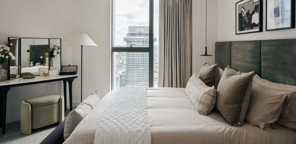 Perfectly positioned on the Isle of Dogs and surrounded by landscaped gardens and waterside spaces, South Quay Plaza combines serene waterfront living with instant access to the energy of Canary Wharf. Its panoramic views and elevated city skyline perspective make it one of London’s most sought-after residential addresses.